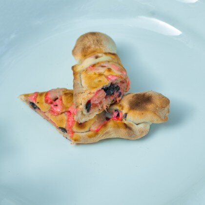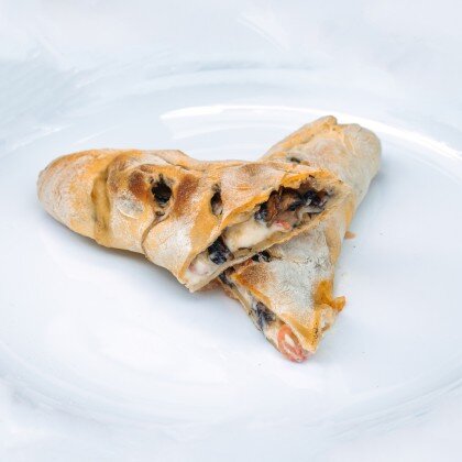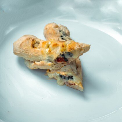 Тесто, соус томатный, сыр моцарелла, томаты, филе куриное, шампиньоны, опята маринованные, огурцы маринованные, зеленое масло