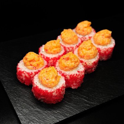 Нори, рис, творожный сыр, огурец, лосось "Терияки", кляр, Темпура.