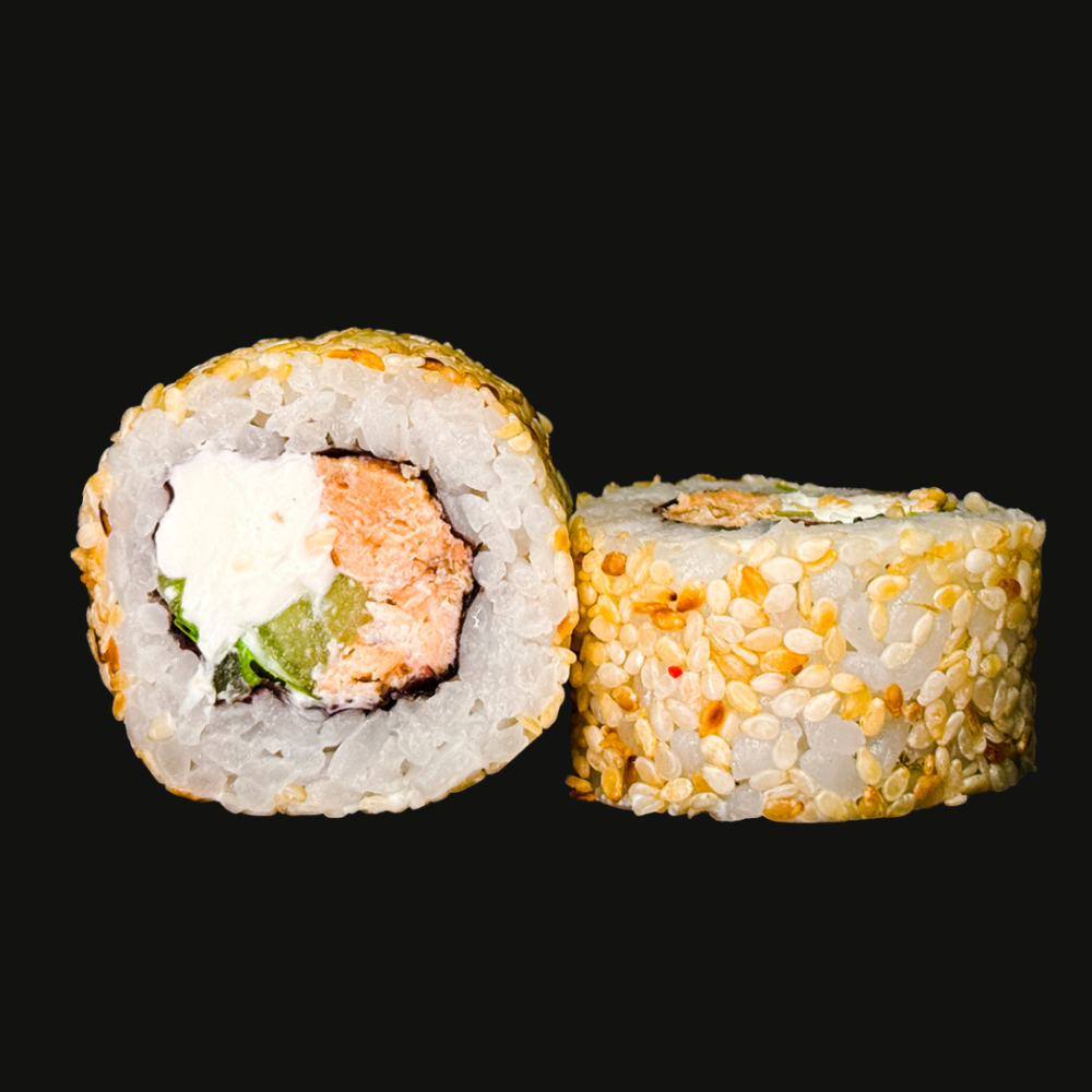 Нори, рис, творожный сыр, огурец, лосось "Терияки", кунжут