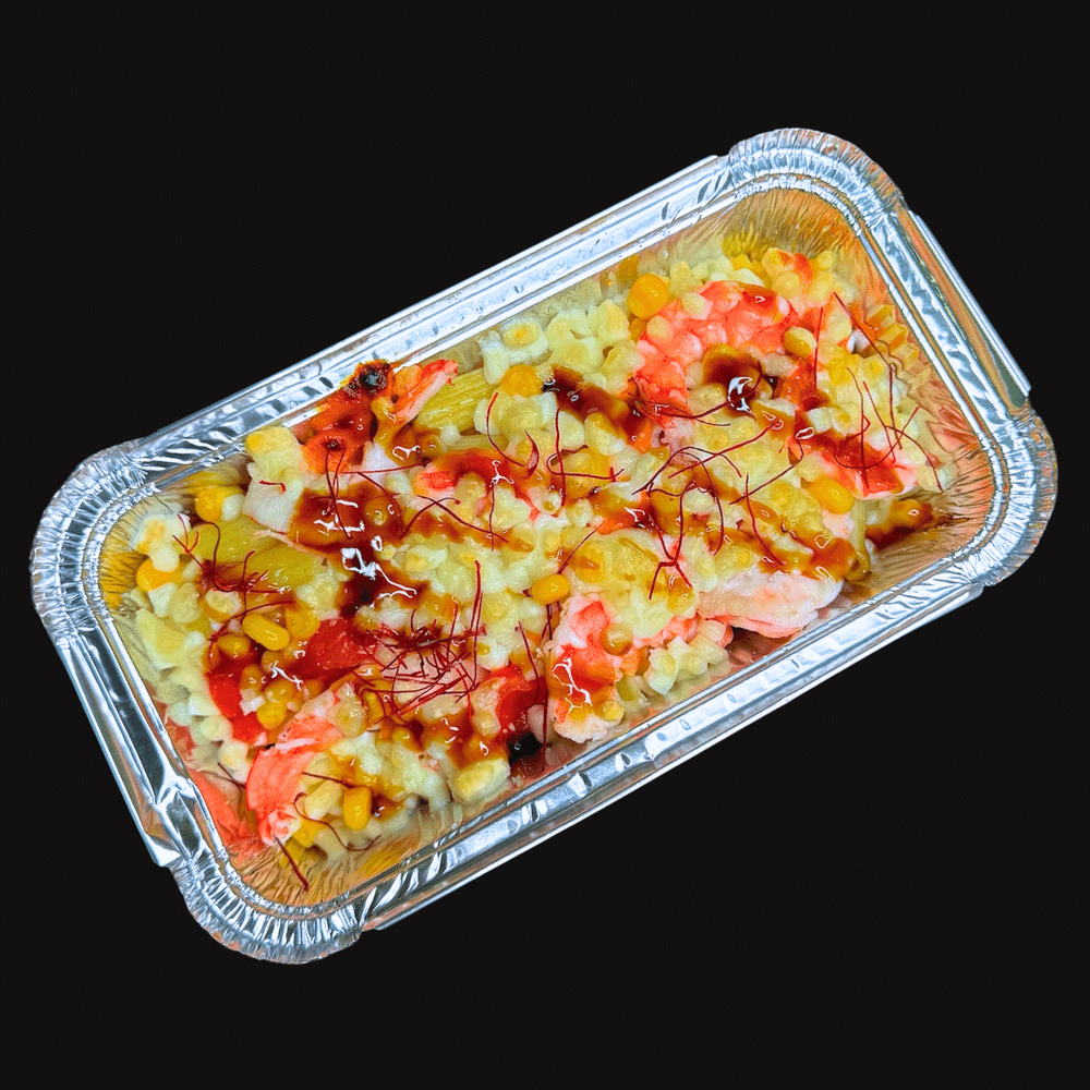 Итальянская паста Penne Rigate, королевские креветки, томаты, кукуруза, сыр моцарелла, соус "Том Ям", соус "Унаги", нити чили.
